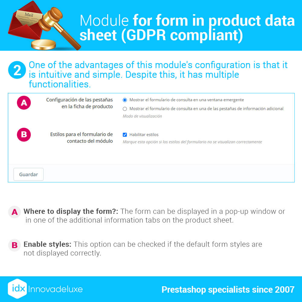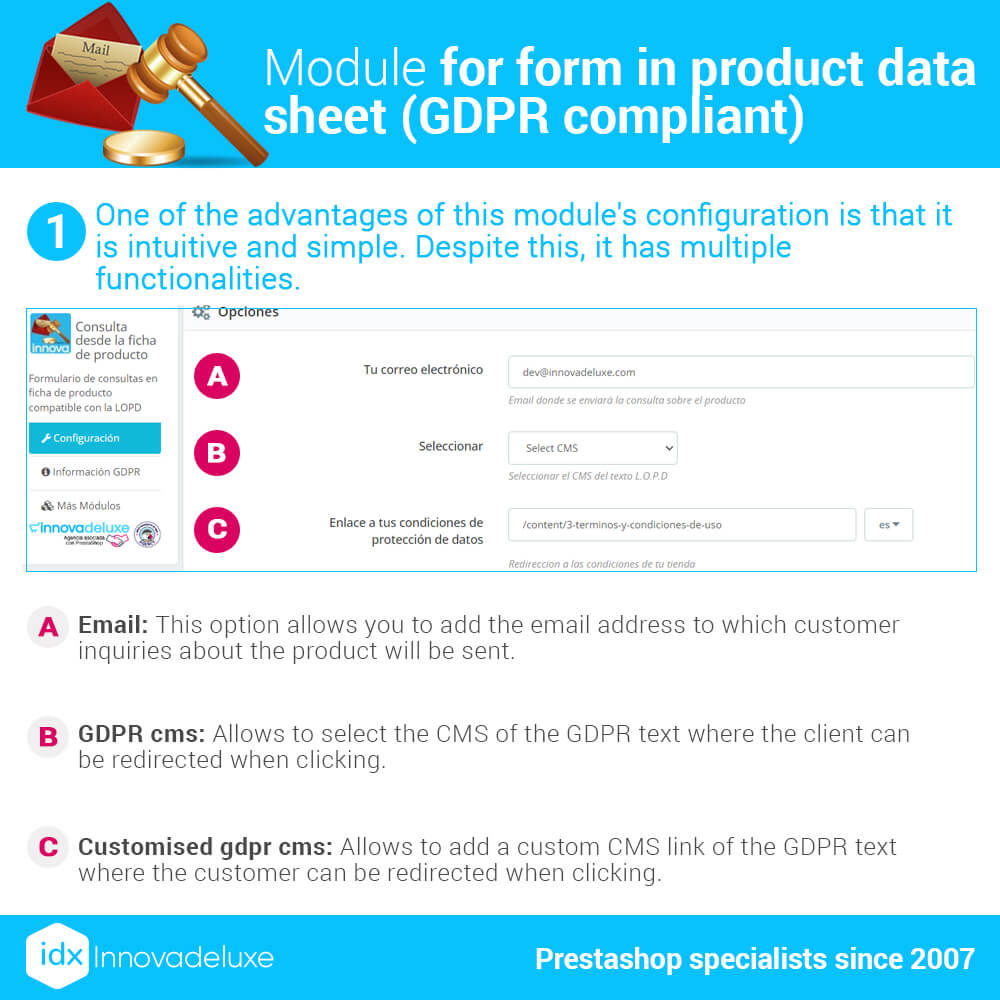 Additionally, it is compatible with Innovadeluxe’s GDPR-RGPD Legal Compliance module, which extends the functionality of your store, for full control of customer data in compliance with the law.